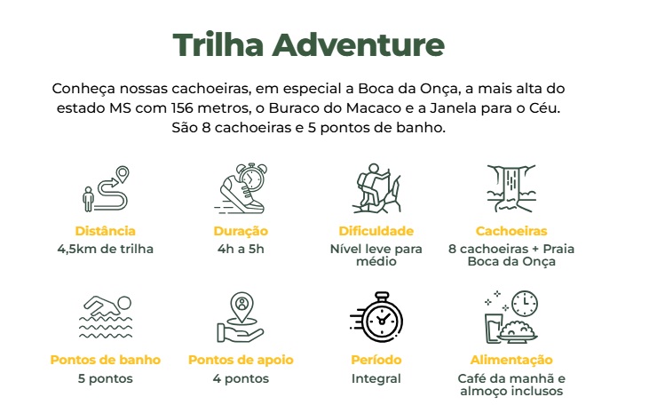- Acesso a todas as cachoeiras da trilha escolhida