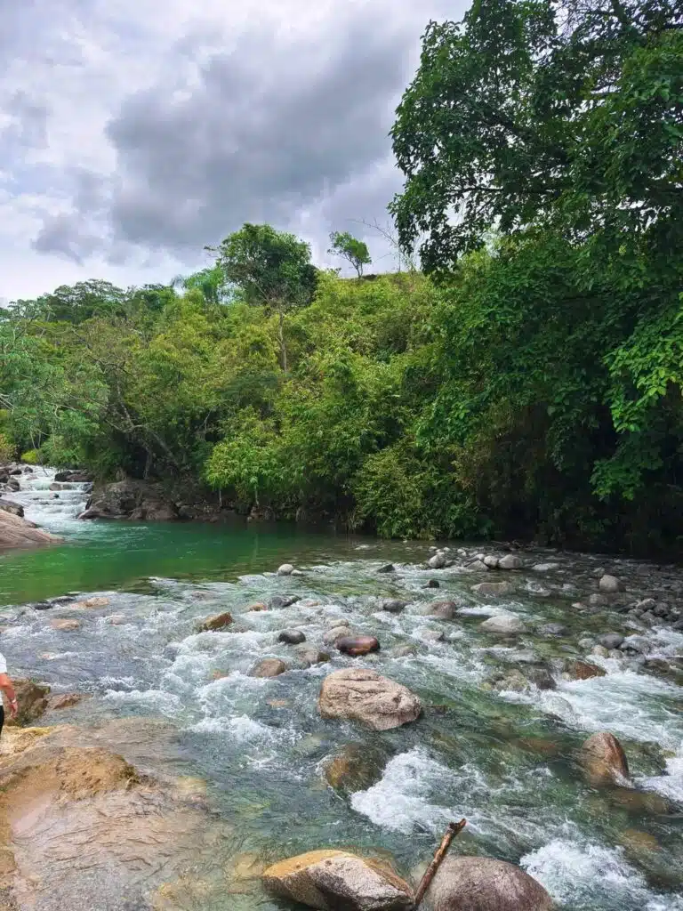 Antes de colocar o pé na trilha, vale um alerta importante: essa cachoeira exige caminhada em terreno irregular. Pedras soltas, subidas e descidas, trechos escorregadios, raízes que podem te fazer tropeçar e até se machucar seriamente. Ainda assim, muita gente comete o erro clássico de ir “com o que se tem em casa” — e é exatamente aí que começam os tombos, dores, bolhas nos pés e aquele arrependimento no meio do caminho.