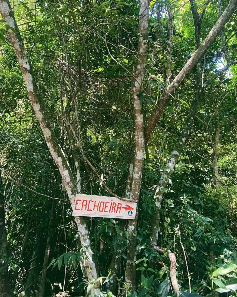 Após descer do ônibus, será necessária uma caminhada de cerca de 10 minutos até alcançar a entrada da trilha. O caminho é relativamente simples, seguindo pela rua principal em direção à praia e posteriormente virando à direita conforme as indicações para a cachoeira. Se você não quer passar perrengue, vá de aplicativo de carro, como Uber ou 99, que a experiência será melhor e mais rápida.