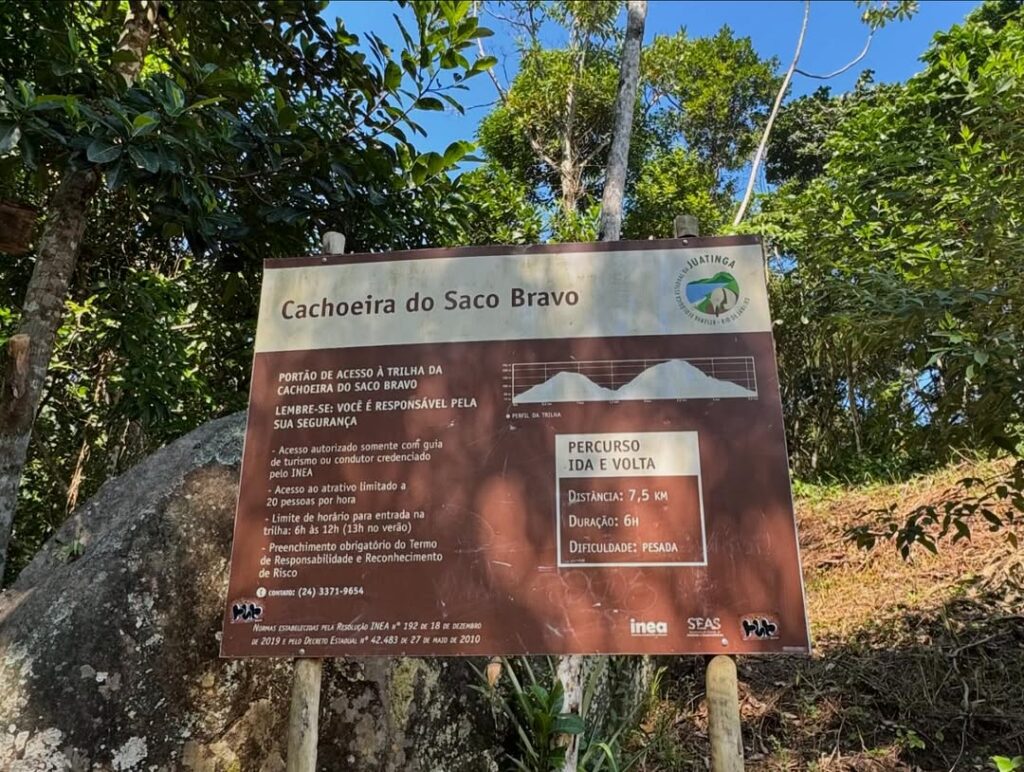 Sim e não, rsrs. Há regramento via placas que é obrigatório, mas não há bem uma fiscalização caso você seja um trilheiro experiente e com Wikiloc. Mas é recomendado o acompanhamento de guias credenciados para visitar a Cachoeira do Saco Bravo. Isso se deve tanto à complexidade da trilha, que não possui sinalização adequada, quanto às normas de preservação da Reserva Ecológica da Juatinga. Os guias locais conhecem bem o território e garantem uma experiência mais segura e enriquecedora.