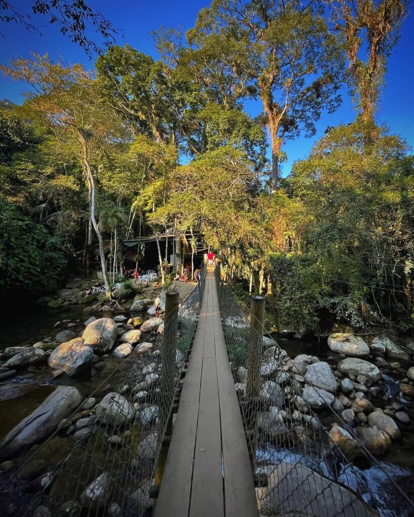 Uma caracterĆstica marcante do local Ć© a ponte pĆŖnsil de madeira que atravessa o rio, conectando a Ć”rea da trilha ao Restaurante PoƧo do Tarzan. A travessia pela ponte Ć© uma pequena aventura Ć parte, pois ela balanƧa levemente enquanto se caminha, proporcionando belas vistas do rio e da vegetação ao redor.